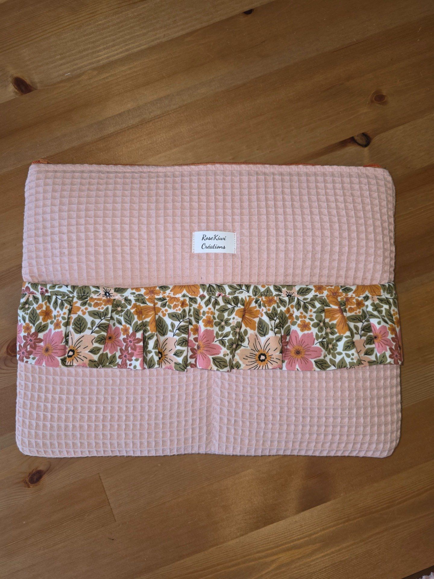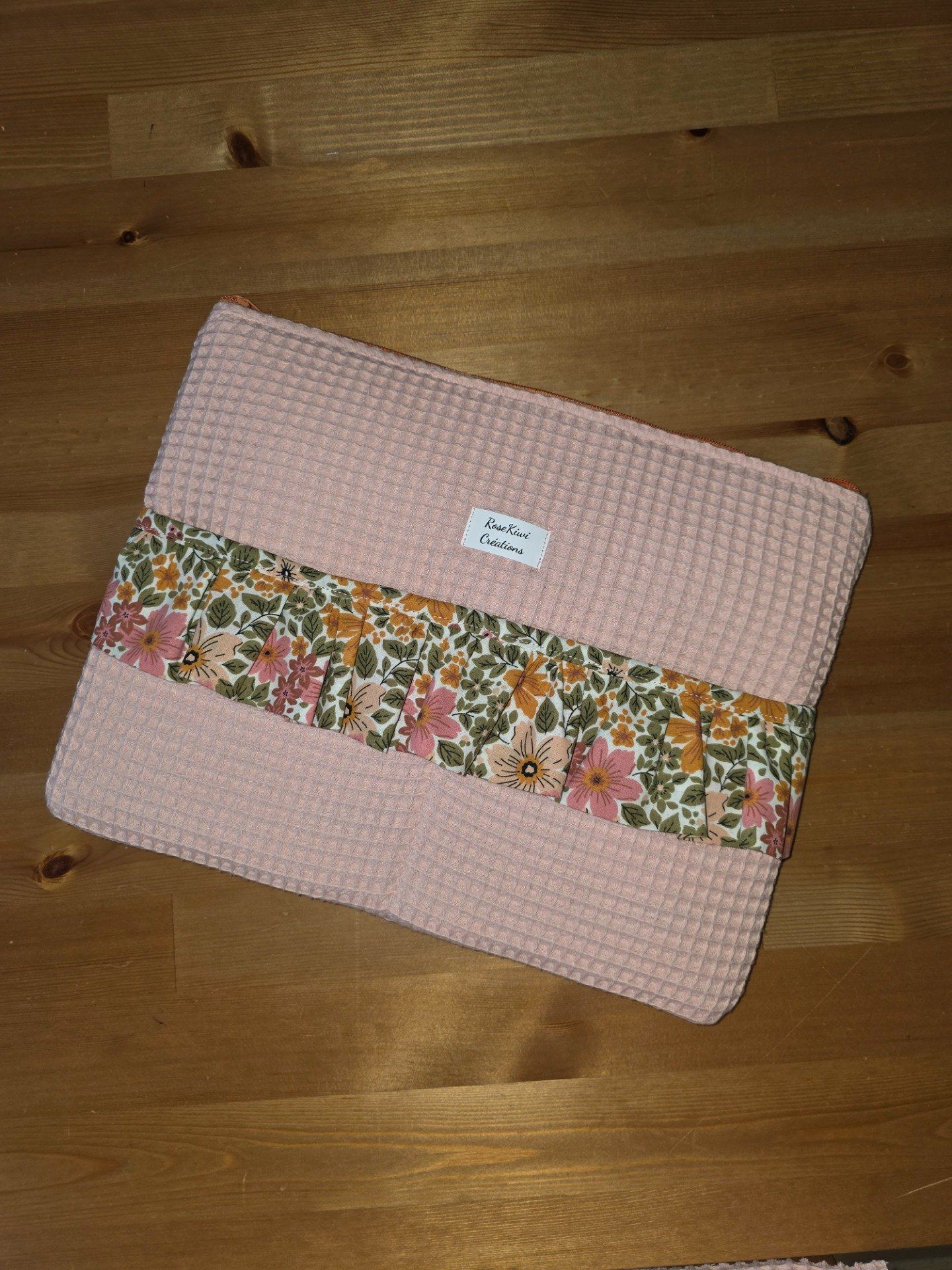 Pochette ordi Macbook en nid d’abeille molletonnée rose poudré