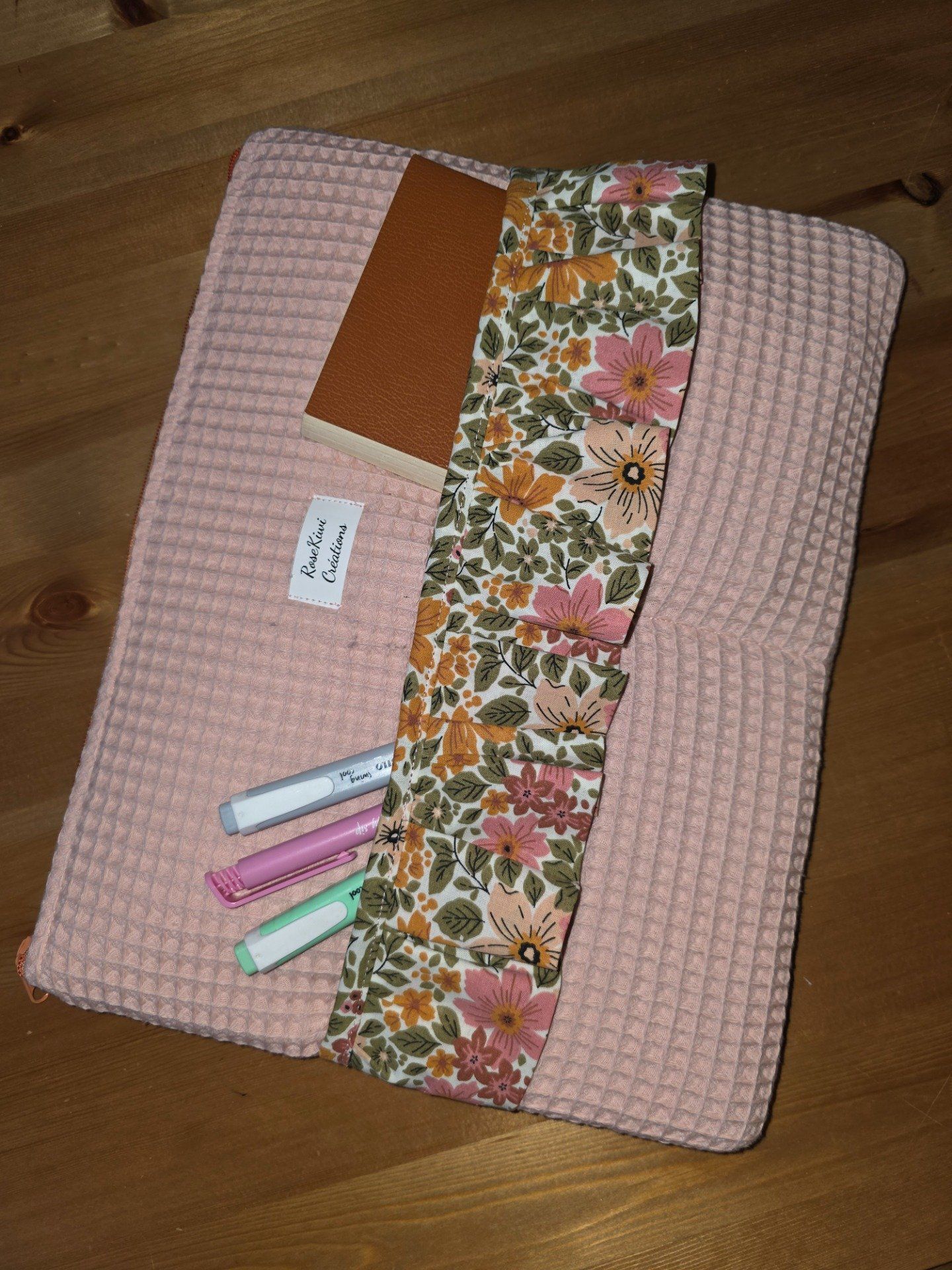 Trousse de toilette en nid d’abeille rose poudré et froufrou