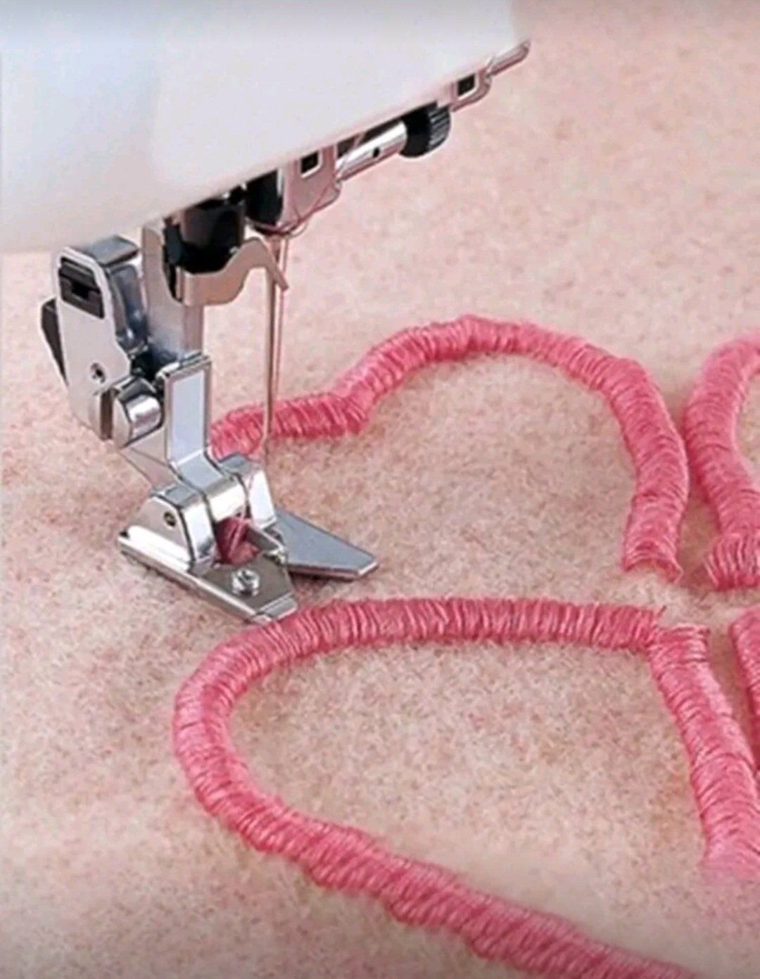 Pied de biche spécial broderies en relief 3D en acier pour réaliser en un seul passage de magnifiques broderies en 3D Il suffit de régler votre largeur de point zigzag et votre machine fera le reste. Il s'adapte à toutes les marques de machines à coudre (pied de biche à encliqueter).
