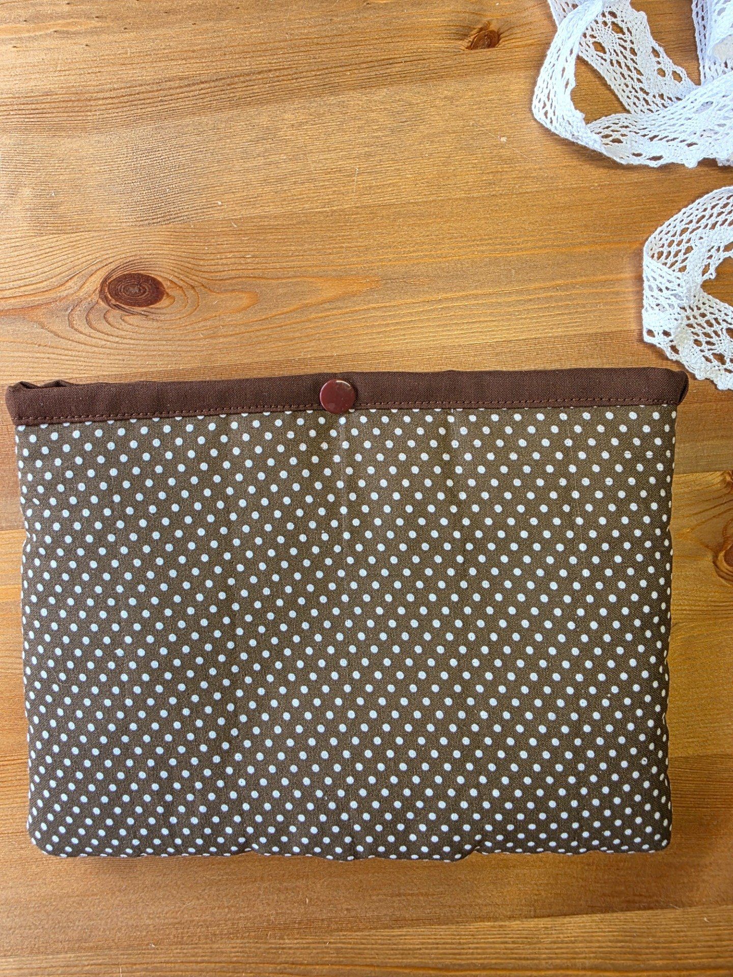 Pochette à livre molletonnée en coton – Housse protège-livre doublée – Fermeture bouton pression – Format 23 x 16,5 cm – Fait main - marron chocolat