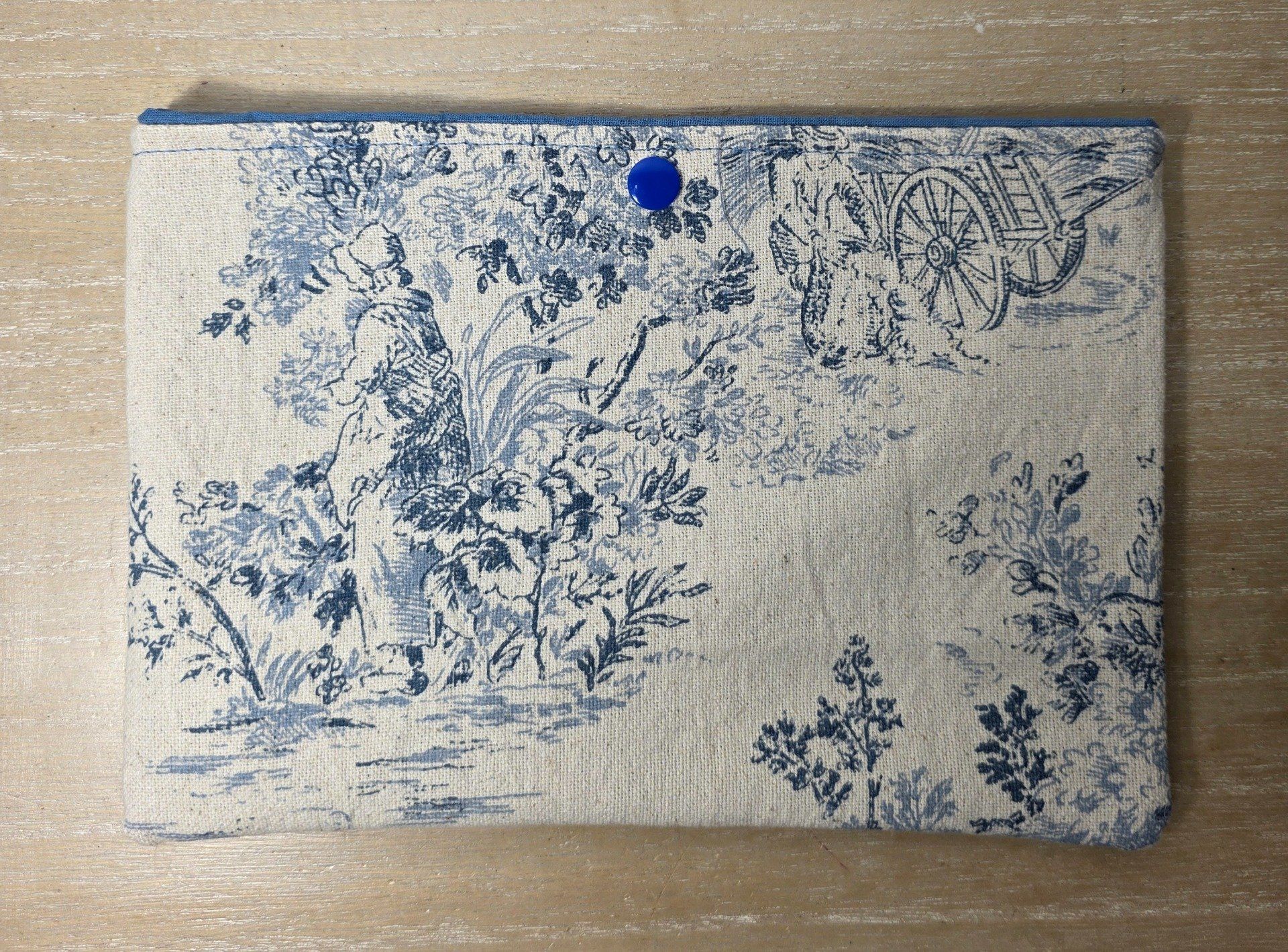 Pochette à livre Vintage en toile de Jouy Bleu et crème