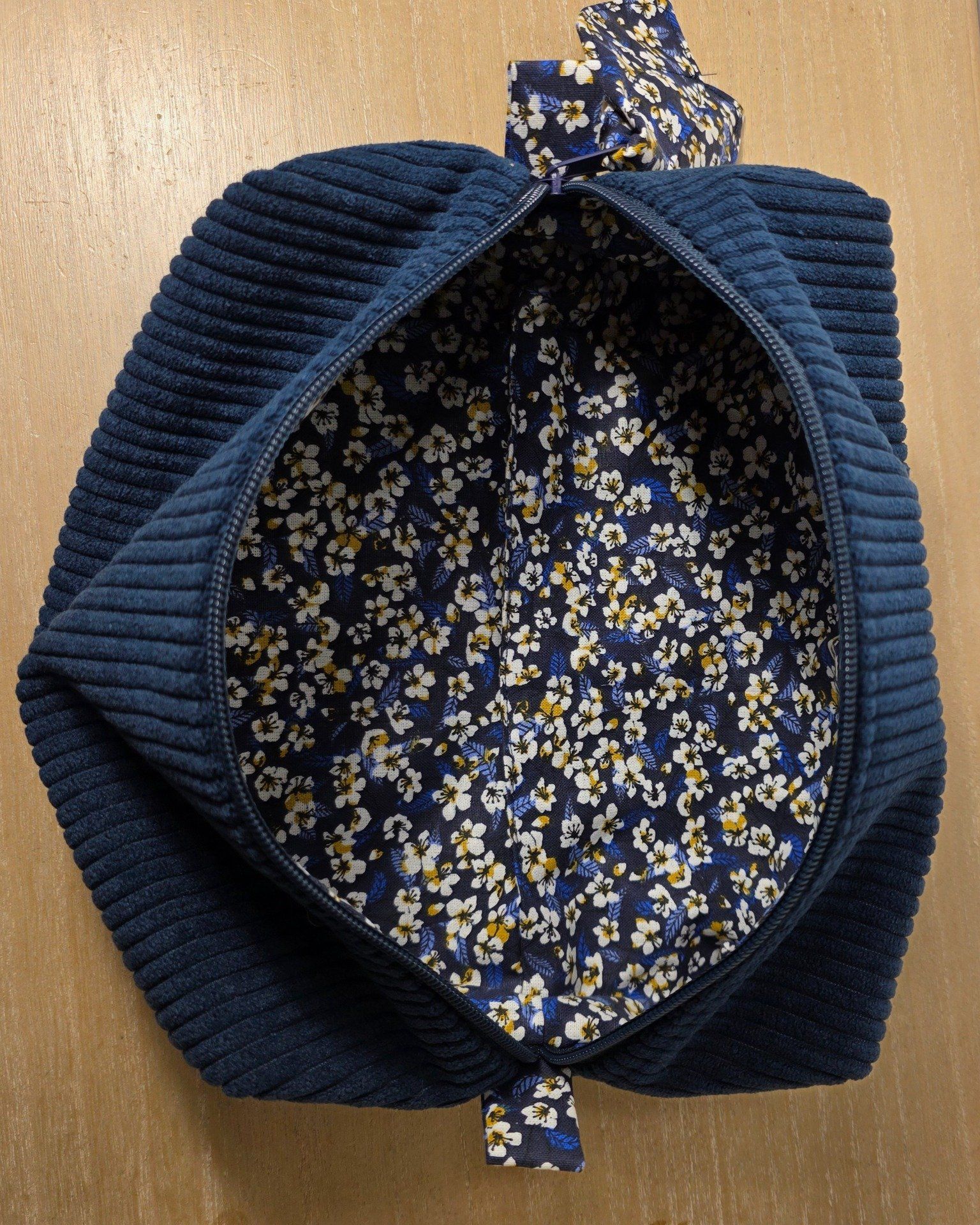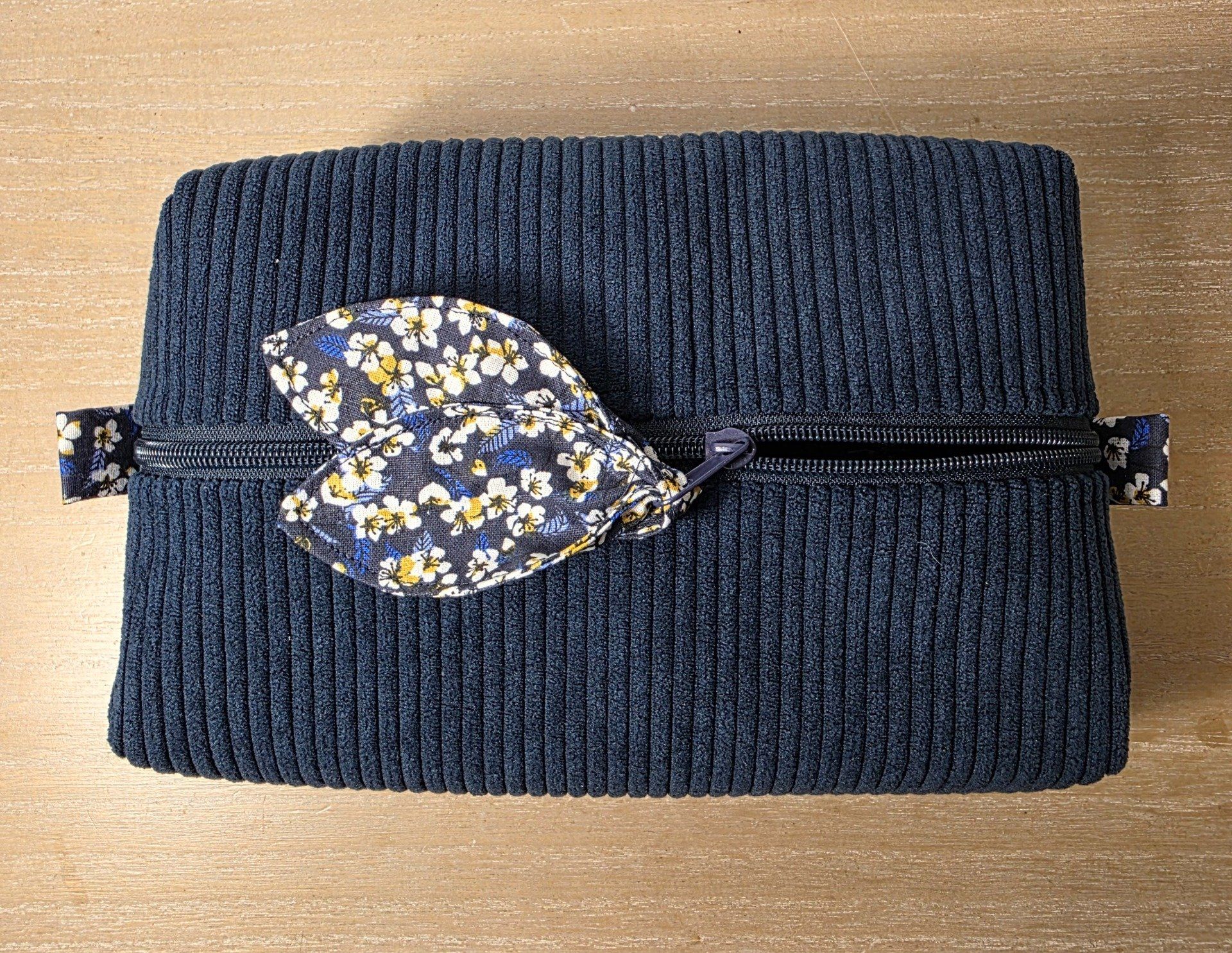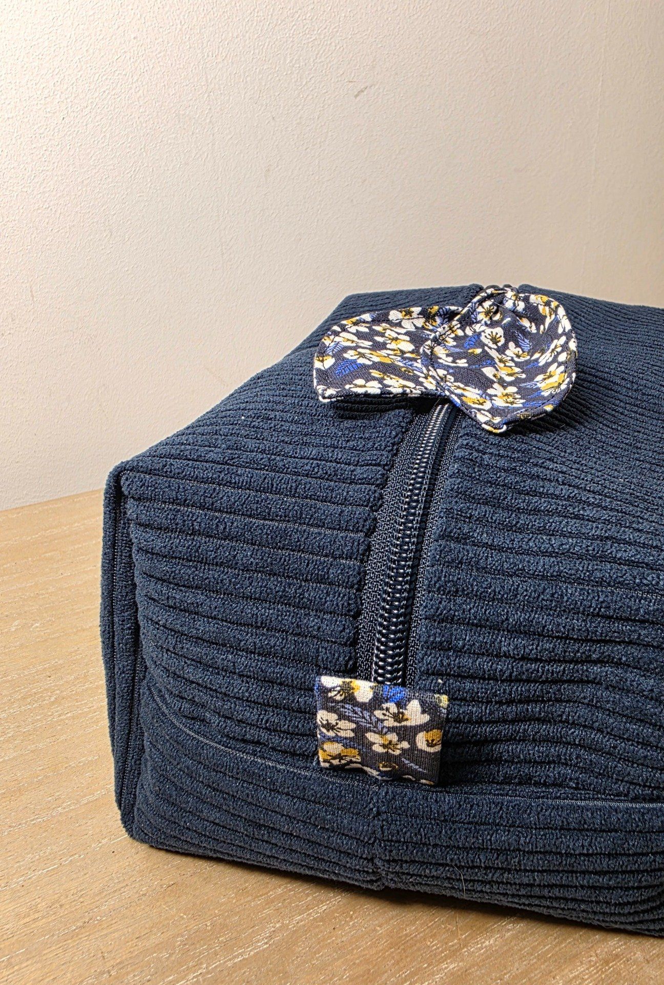 Maxi trousse de toilette en velours côtelé, bleu marine